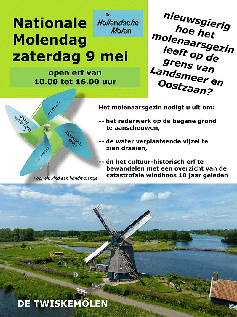 De molen staat sinds 1974 op zijn huidige plaats, op de grens tussen de gemeenten Landsmeer en Oostzaan.