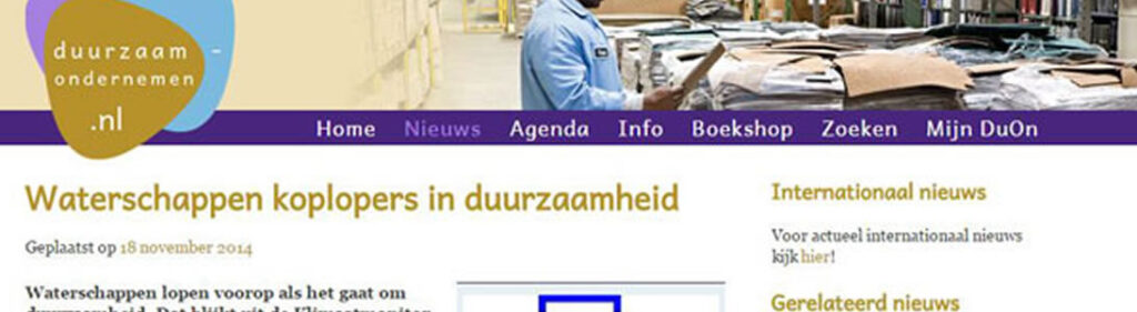 Waterschappen lopen voorop als het gaat om duurzaamheid. Dat blijkt uit de Klimaatmonitor Waterschappen 2014 die op 19 november j.l. werd overhandigd aan de vaste commissie voor Economische Zaken van de Tweede Kamer. De waterschappen (waar het Hoogheemraadschap Hollands Noorderkwartier er een van is) zijn goed op stoom om de hoge ambities die zij zichzelf hebben gesteld op het gebied van energieproductie en -besparing te realiseren. Lees dit bericht verder op de website duurzaam-ondernemen.nl